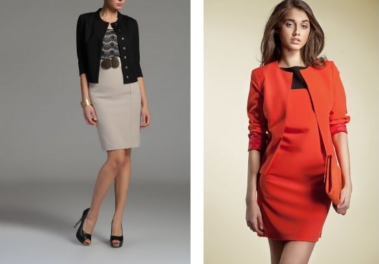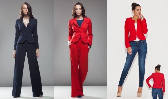 Costumele din pantalon si sacou. Daca nu puteti renunta nici in ruptul capului la pantaloni, puteti sa va imbracati si cu aceasta tinuta, cu conditia ca poseta si pantofii sa fie cat mai colorati posibil, costumul sa fie de culoare uni si sa nu va uitati bijuteriile. Puteti sa fiti si mai indraznete si sa alegeti costmul colorat puternic iar accesoriile mai cuminti.