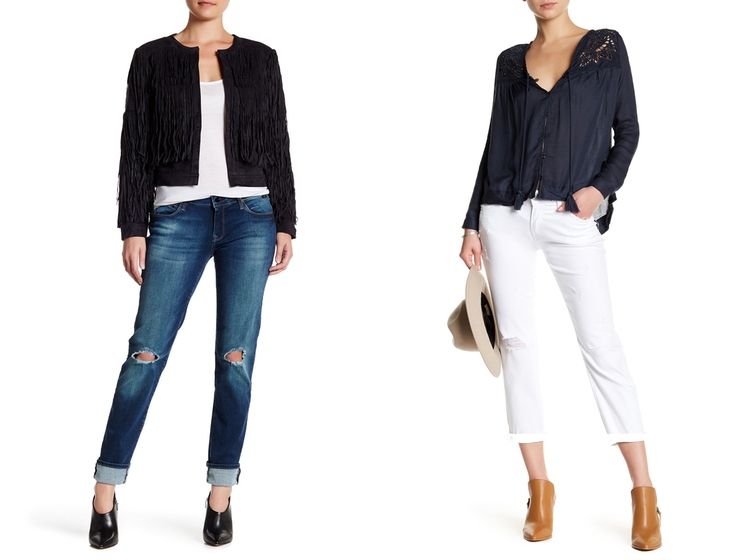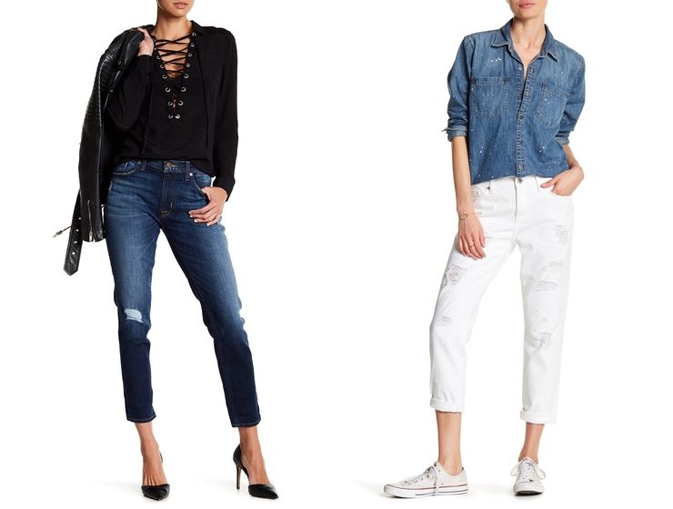 Boyfriend jeans pot fi purtati cu sacou si top, botine de lac si palarie pentru o intalnire in oras. La o cafea cu o prietena sau la cumparaturi se potriveste o tinuta cu jeans, camasa casual, geaca dar pantofi cu toc colorati, pentru o nota chic. Blugii pot fi purtati cu un pulover oversize si pantofi negri cu toc. Jacheta scurta cu margele si sandalele mai elegante ridica blugii la alt nivel.
