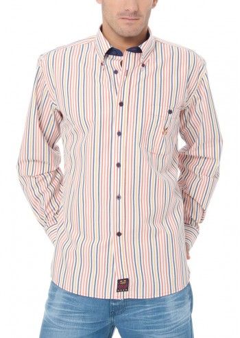Spagnolo, Man Know Your Line Navy&Salmon Striped Shirt