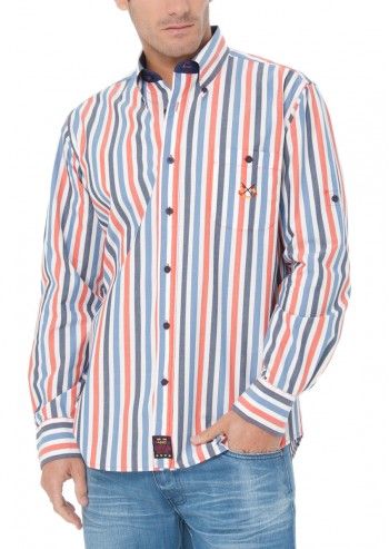 Spagnolo, Man Wall Street Red&Navy Striped Shirt