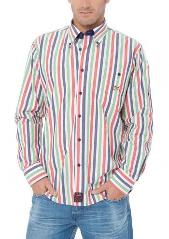 Spagnolo, Man Wall Street Red&Jade Striped Shirt