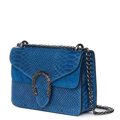La plimbare poti lua aceast.a geanta micuta cu lant pe umar care nu te incurca. Poseta dama din piele naturala Diane albastra este un model cu design atractiv, realizata din piele amprentata si elemente de piele intoarsa. Dispune de un compartiment incapator si de un buzunar interior cu fermoar – PRET 239 lei