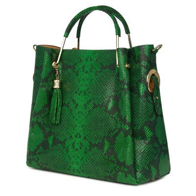 Geanta din piele naturala Fabiana verde este un model prevazut cu trei compartimente, cel din mijloc putand fi indepartat, geanta devenind astfel cu un singur compartiment.  Este o geanta eleganta, designul fiind completat de finisajele metalice de culoare aurie. Se poate purta atat in mana cat si pe umar, cu ajutorul bretelei. Geanta verde foarte incapatoare pe care o poti purta la serviciu si in care incap documente, farduri, portofel, etc – PRET 299 lei