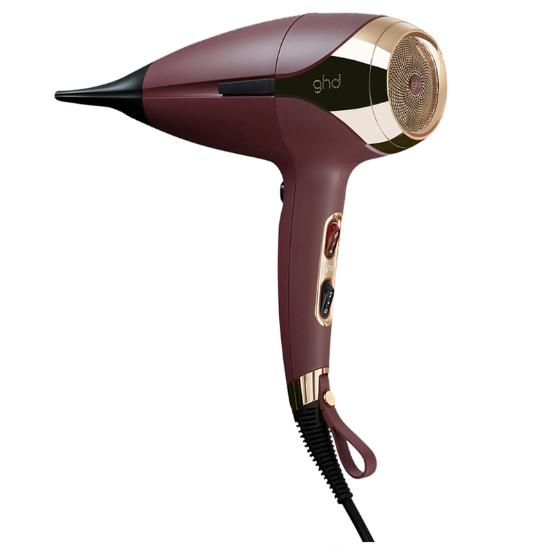 Uscătorul de păr profesional ghd Helios, favorit printre fani, este cel mai ușor și rapid al mărcii, oferind cu 30% mai multă strălucire decât alte modele. Deși cântărește 780 g, are un design ergonomic care echilibrează greutatea între mâner și cap.