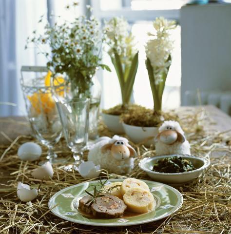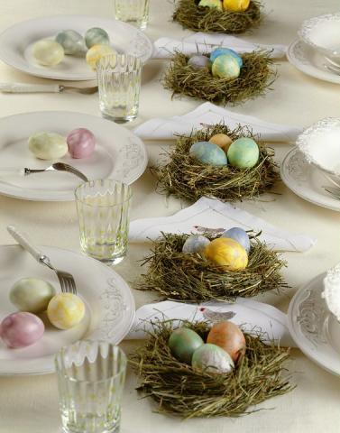 Masa de Paste in familie, cu flori, cuiburi si oua