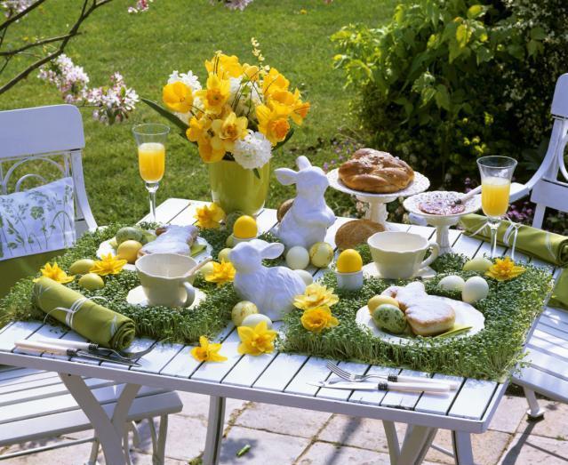 Daca n-aveti nicio idee pentru decorarea mesei de Paste, iata ceva sa va inspire. Folositi elemente din natura, flori, iarba artificiala, cuiburi cu oua, ramurele de copac inmugurite, iepurasi, puisori, oite.