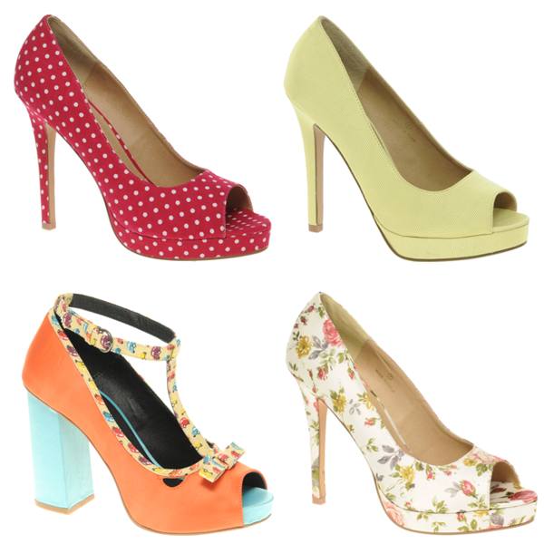 Pantofi platforma ASOS cu livrare gratuita -preturi in euro: 24,44 cei rosii, cei cu flori si cei galbeni, 47,51 cei portocalii.