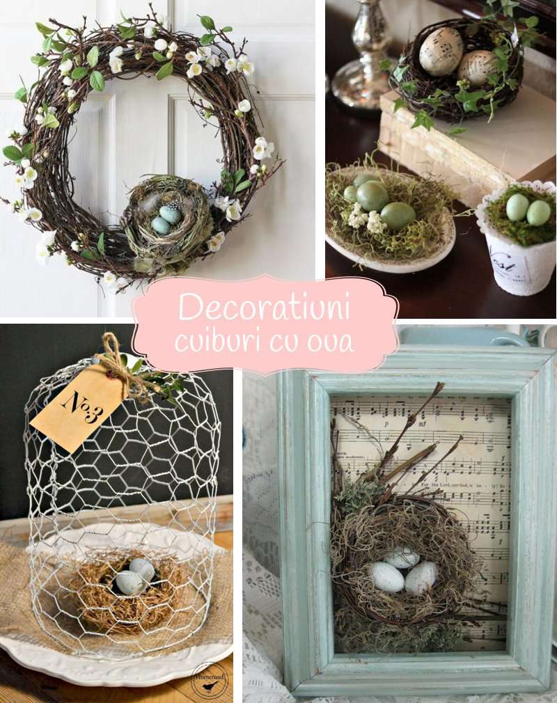 V-ati gandit sa folositi decoratiuni simpatice folosind cuiburi cu oua? Iata un motiv: pasarile si cuiburile lor sunt simbolice pentru Paste pentru ca semnifica inceputul, renasterea. Ouale si cuiburile de diferite feluri sunt foarte utilizate atat pentru simbolistica dar si pentru aspect. Sigur ca puteti cumpara aceste decoratiuni din magazine insa le puteti face si singure aceste produse handmade.. O sa va arat mai multe modele mai jos care sa va inspire.