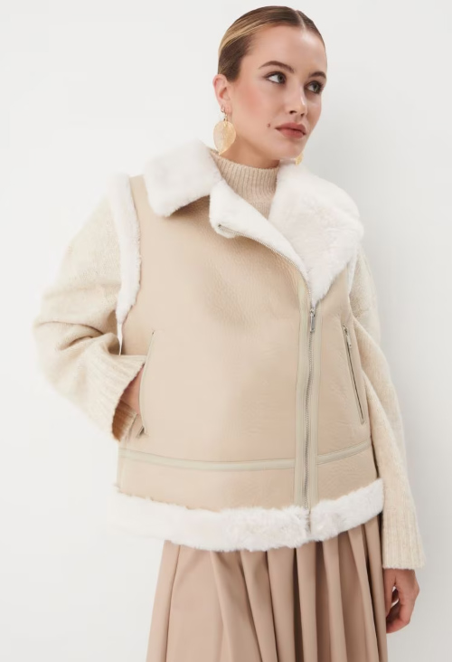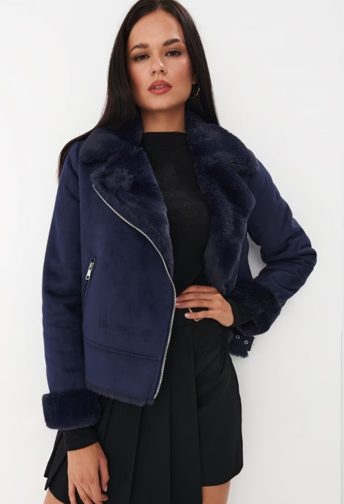 Geacă biker bleumarin căptușită cu blăniță – vezi preț