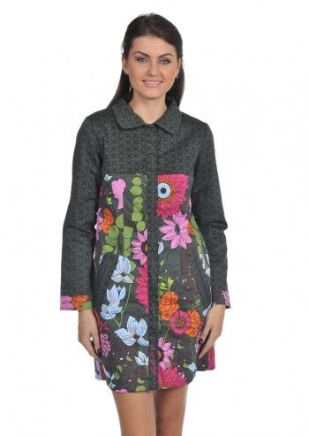 Trench chic realizat dintr-un material fin de culoare verde englez, prevazut cu inchidere cu nasturi pe partea frontala si guler usor ascutit. Trench-ul are o croiala usor evazata si este definit de un imprimeu floral bogat in nuante de roz, portocaliu, mov, verde si bleu. Modelele geometrice ce insotesc imprimeul creeaza contraste autentice, pentru un look impecabil.