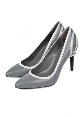 Pantofi de culoare gri, realizati din piele, ce sunt prevazuti cu varf ascutit si aplicatii decorative in nuante de gri perlat. Modelul are un toc inalt, subtire ce are un design original. Pantofii sunt alegerea ideala pentru femeile care vor sa isi personalizeze tinuta cu o piesa extrem de chic.