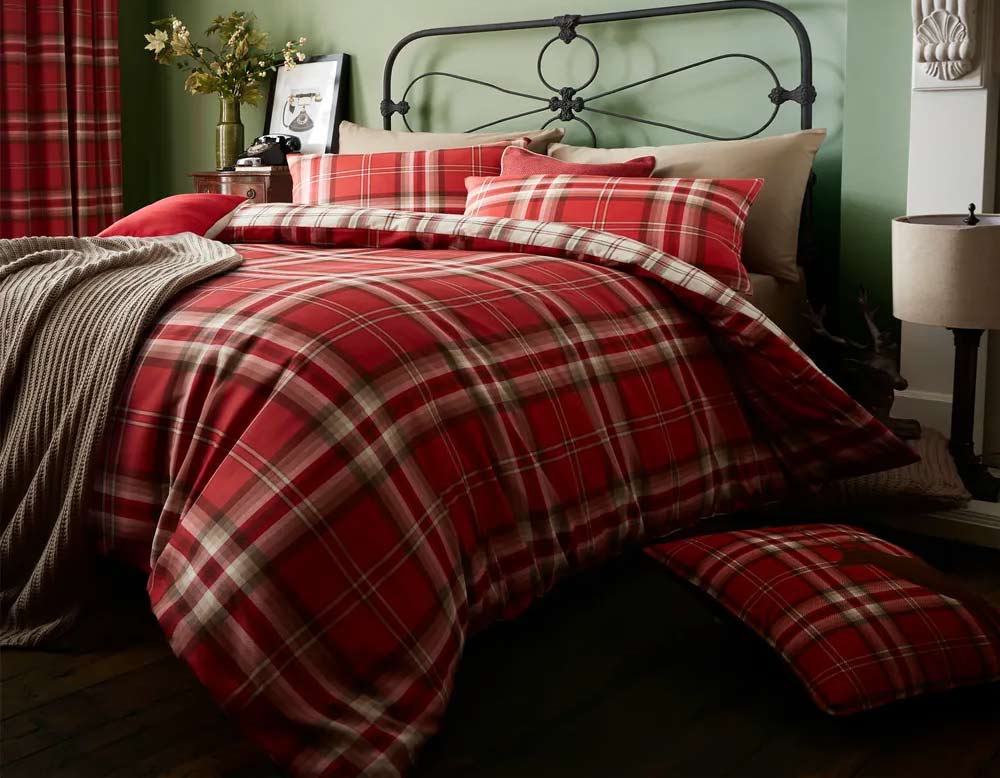 Lenjerie de pat de Crăciun în carouri. Plaid (carouri) este un model clasic și atemporal care este asociat inconștient cu lunile mai reci. Așternuturile cu acest model au ceva extrem de confortabil, cu o notă de eleganță restrânsă.