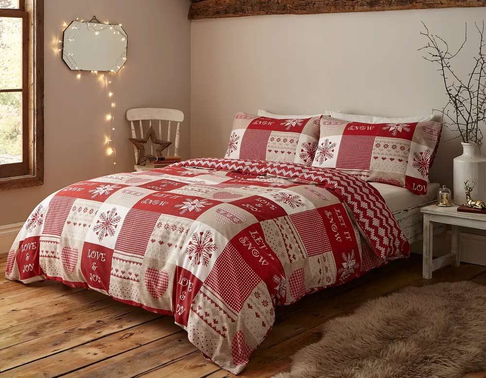Lenjeria de pat de Crăciun poate avea motive felurite: Moș Crăciun, brazi de Crăciun, cadouri, ghirlande, reni și gnomi. De obicei este plină de culori. Totuși, se poate găsi și lenjerie într-o variantă mai discretă, inspirată din estetica scandinavă. Au modele mai structurate și o paletă de culori limitată.