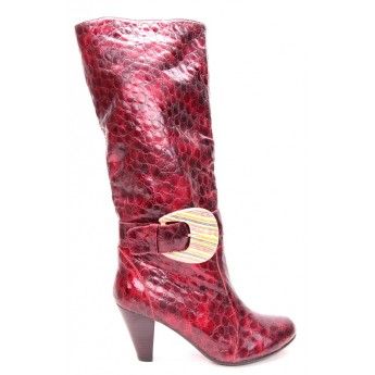 Cizme imitatie piele de crocodil cu toc inalt si gros si bot rotunji, pret 74,5 lei