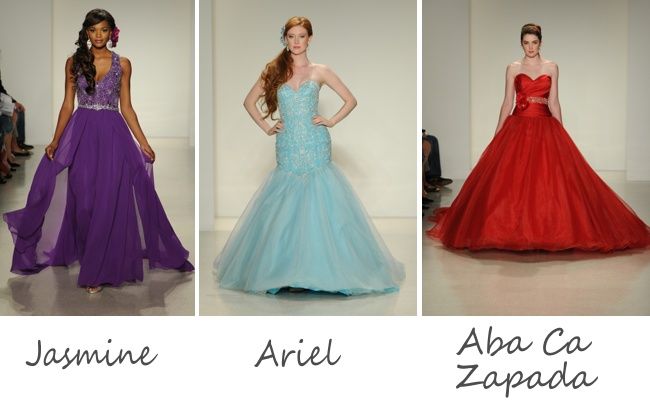 Michele Piccione, chief creative officer la Alfred Angelo spunea ca alaturi de siluetele specifice si de ornamentele fiecarei rochii, culorile au fost alte mijloace de a aduce magia lumii Disney la realitate, permitand viitoarelor mirese sa-si exprime personalitatea.