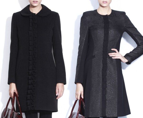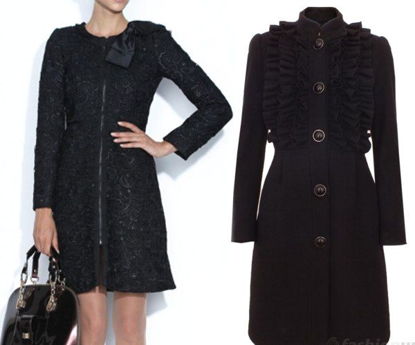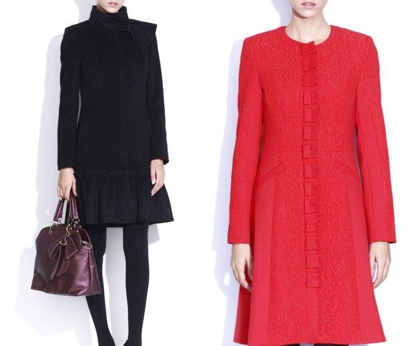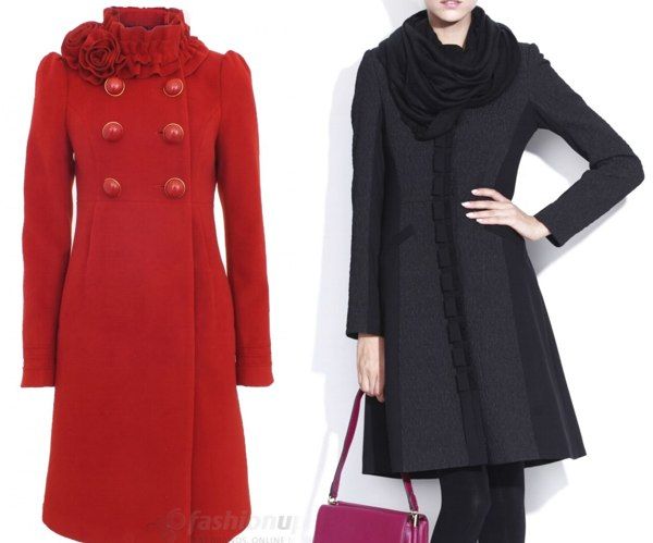 Paltonul negru de stofa este stil retro, volanul de stofa cusut la poale aminteste de anii 30-40 iar funda de la gat te fereste si de frig dar este si foarte chic. Dar daca iti plac culorile mai tari poti alege oricand paltoane colorate, ca cel rosu de sus. Priveste cu atentie la combinatia de materiale si la banda decorativa de la linia nasturilor care fac dintr-un palton cu o croiala obisnuita, in forma de A, un palton irezistibil.