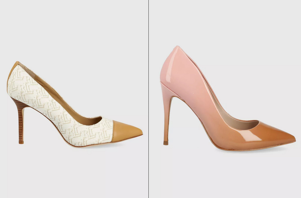 - Pantofi cu toc subtire din colectia Lauren Ralph Lauren. Model confectionat din combinatia materialului textil cu pielea naturala – 569,90 lei
