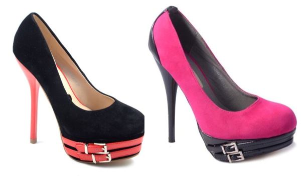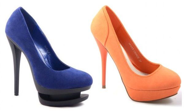 Daca preferati pantofi mai simpli si uni incercati pe cei albastri cu platforma dubla de 4 cm si toc de 15 la 155 lei sau pe cei portocalii cu platforma de 3 si toc de 13 la un pret de 129 lei.