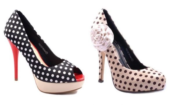 Pantofii negri cu buline albe au toc de 13 cm si platforma de 3 cm – pret 125 lei