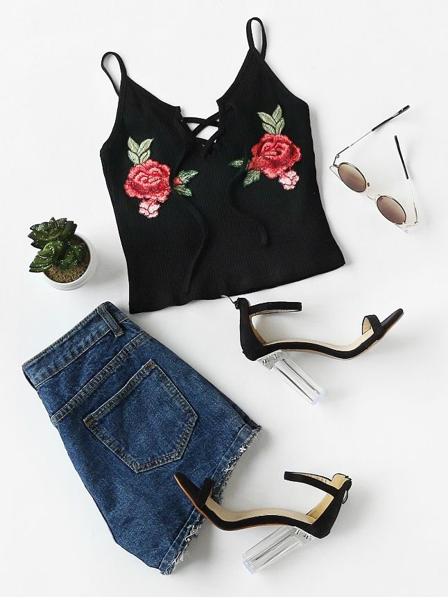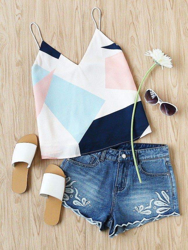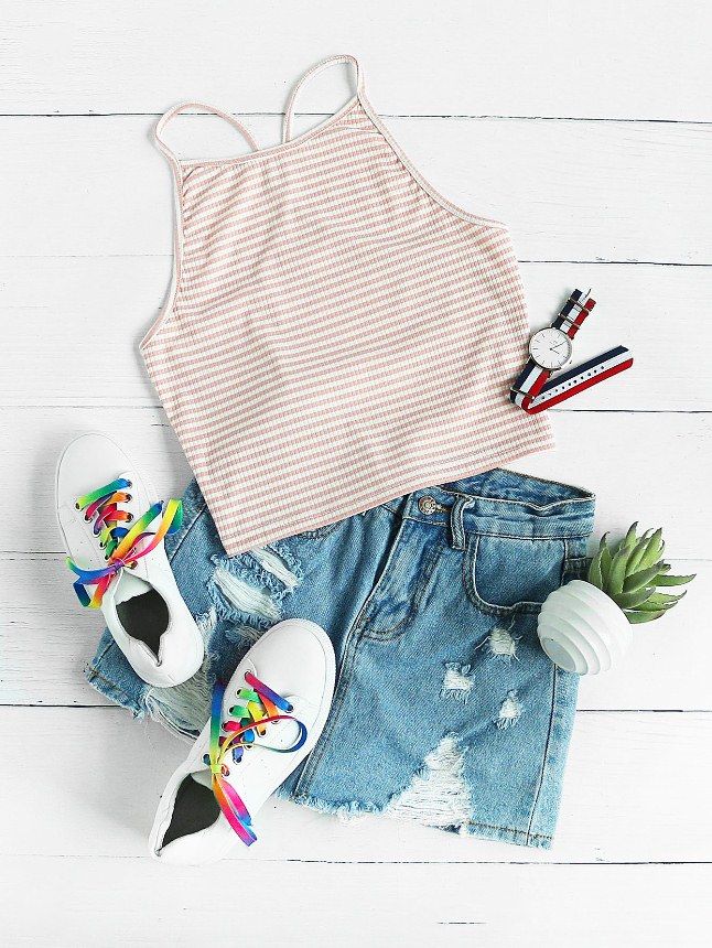 tricou-crosetat-pantaloni-scurti-denim