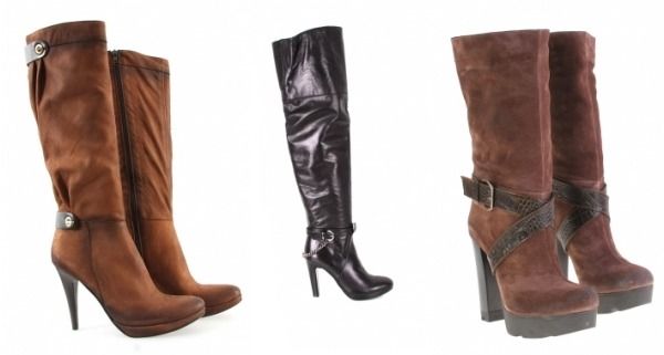 Daca preferi stilul elegant, atunci potrivite sunt cizmele cu toc inalt, subtire si talpa nu foarte groasa. Poti alege si talpa ortopedica dar interioara, cum sunt cizmele albastre OTTER din piele intoarsa de mai jos. O alta varianta este de cizme de iarna de piele cu talpa semi groasa, cum sunt cele maro de mi sus stanga, la care imi place mult cum sunt prinse la spate cu bucatile de piele si capse. In plus, culoarea care se inchide spre cusaturi, mi se pare foarte interesanta, caramel. In continuare se poarta cizmele gen muschetar, lungi putin peste genunchi sau la jumatatea genunchiului.
