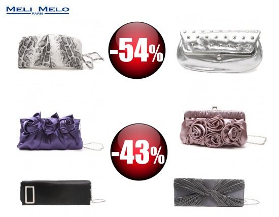Reducerile de la Meli Melo – Paris sunt in toi. Puteti cumpara genti cu pana la 54% mai ieftine, reducerile cuprinzand o gama larga de genti. Un plic poate fi cumparat cu 59,99 in loc de 129,99 sau cu 39,99 in loc de 69,99. O geanta XXL sau una casual are reducere de la 99,99 la 59,99. Modelele si culorile sunt diferite iar faptul ca puteti cumpara online este intr-adevar foarte cool. Puteti face cumparaturile online de la Meli Melo vizitand site-ul lor www.melimeloparis.ro