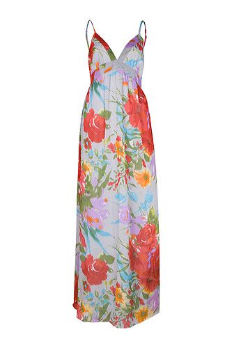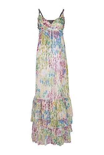 Pentru petrecerile de vara (nunti, ocazii deosebite), opteaza pentru o rochie lunga de matase sau voal uni sau imprimata cu bretele fixe pe umeri si cu croi cambrat pe bust.