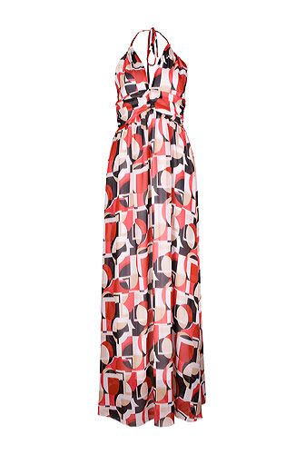 Rochie lunga cu bretele, pentru vara, cu imprimeu geometric