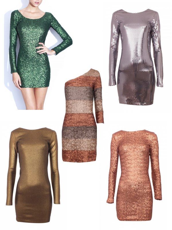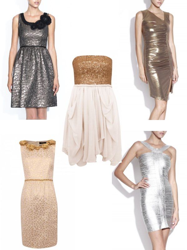 Intre rochiile de petrecere cele mai purtate sunt cele in culori metalizate.. Deja materiale argintii, aurii sau aramii sunt clasice. Acum se adauga si alte culori in straluciri metalice: cupru, verde metalic, rosu, albastru, etc. Daca vrei sa iesi in evidenta, aceasta ar fi cea mai buna alegere, insa nu purta si pantofii si poseta in nuante metalice. Eu as alege sa port la rochia in culori metalice pantofi cu toc negri sau bej nude asortati la poseta plic si fara bijuterii sau eventual un colier statement negru.