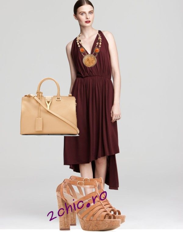 Rochie model grec accesorizata cu geanta, pantofi bratara