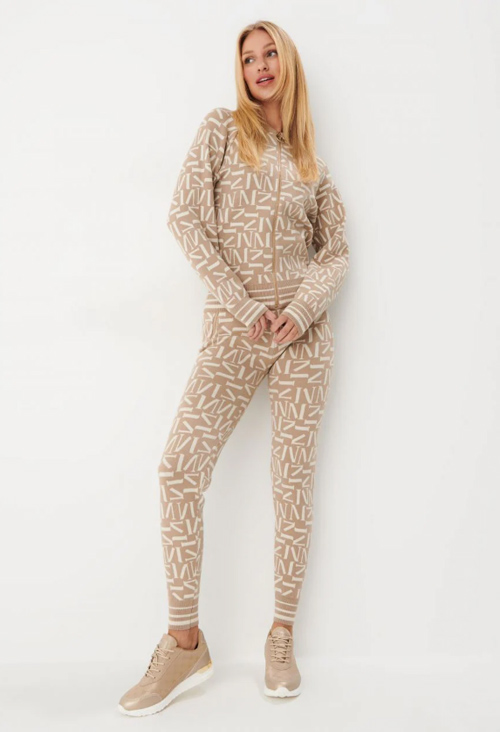 Set tricotat bej bluza cu pantaloni cu monogramă – vezi preț
