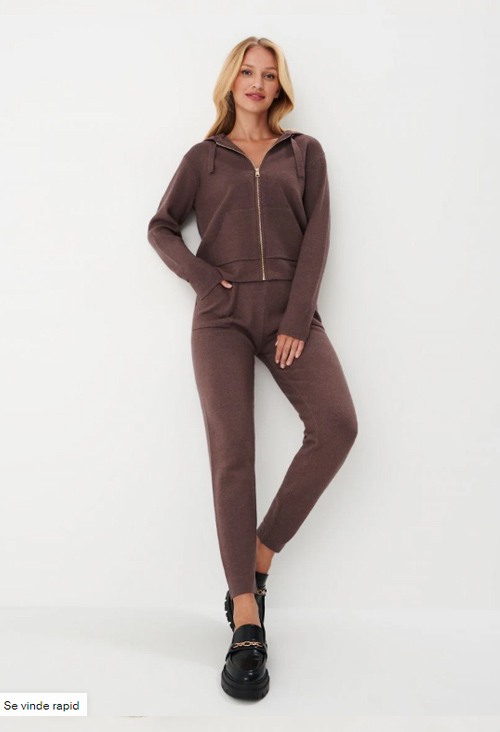 Set tricotat maro bluza cu pantaloni – vezi preț